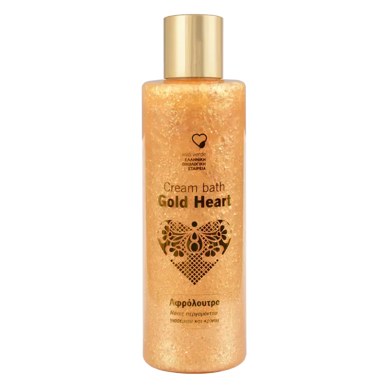 Το απαλό Αφρόλουτρο Gold Heart της Vivo Verde έχει κρεμώδη υφή και χρυσό glitter! Καθαρίζει την επιδερμίδα και της χαρίζει διακριτικό άρωμα λουλουδιών και χρυσά μικροσωματίδια λάμψης.