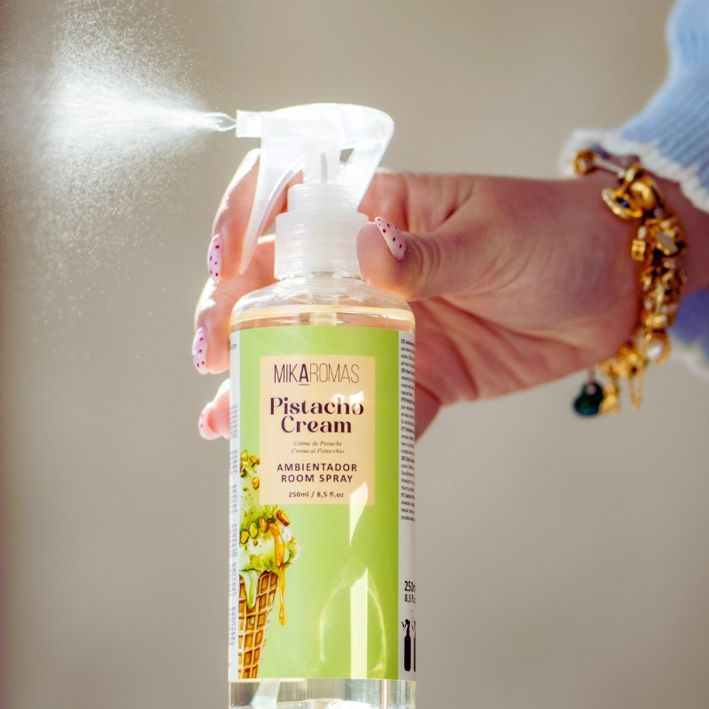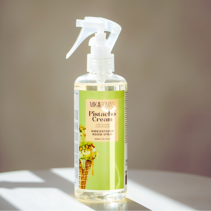 Το αρωματικό spray χώρου και υφασμάτων Mikaromas με γλυκό άρωμα από Κρέμα Φυστίκι, περιέχει μίξη αρωματικών ελαίων υψηλής ποιότητας που προσφέρει μία ευχάριστη αίσθηση φρεσκάδας στον χώρο!