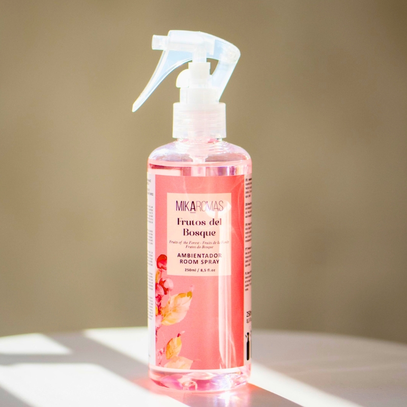 Το αρωματικό spray χώρου και υφασμάτων Mikaromas με δροσερό άρωμα από Κόκκινα Φρούτα, περιέχει μίξη αρωματικών ελαίων υψηλής ποιότητας που προσφέρει μία ευχάριστη αίσθηση φρεσκάδας στον χώρο!