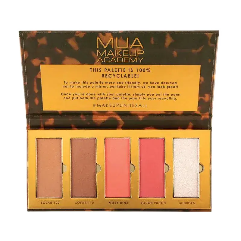 Η παλέτα προσώπου Golden Hour της MUA έχει όλα όσα χρειάζεστε για το μακιγιάζ! Περιλαμβάνει 2 πουδρένια bronzer, δυο αποχρώσεις ρουζ και ένα highlighter.