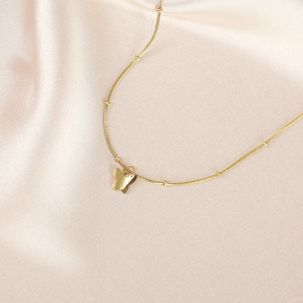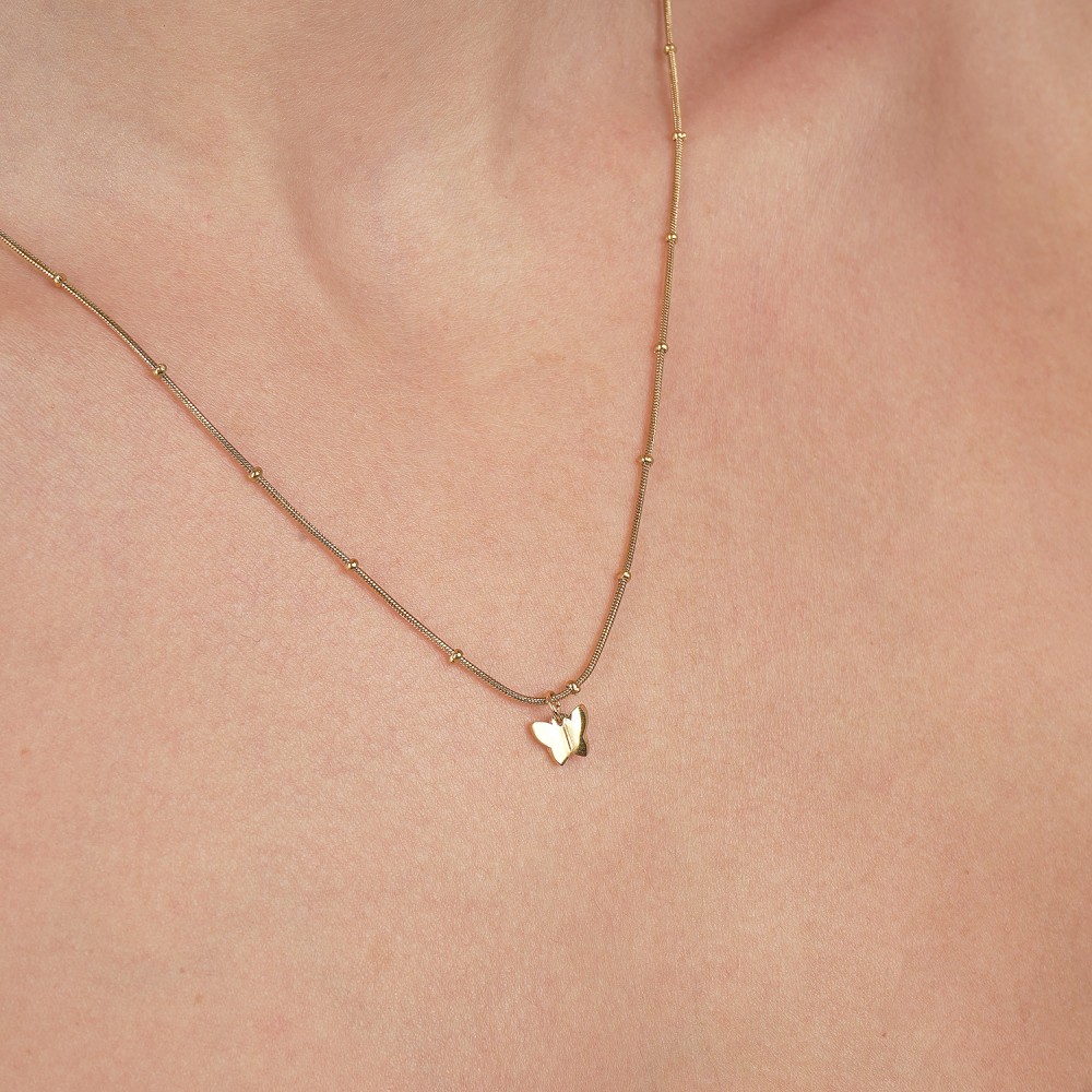 Η λεπτή αλυσίδα συνδυάζει μία μικρή πεταλούδα σε χρυσό χρώμα, που ταιριάζει με κάθε εμφάνιση, για κάθε στιγμή της ημέρας.
