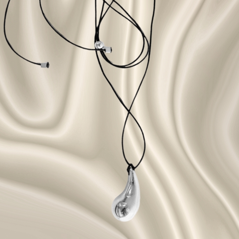 Κομψό κολιέ με κορδόνι μαύρο και κρεμαστό σχέδιο δάκρυ σε ασημί χρώμα, από ανόδειξωτο ατσάλι. Συνδυάζεται εύκολα για να ταιριάζει με κάθε μοντέρνα εμφάνιση.
