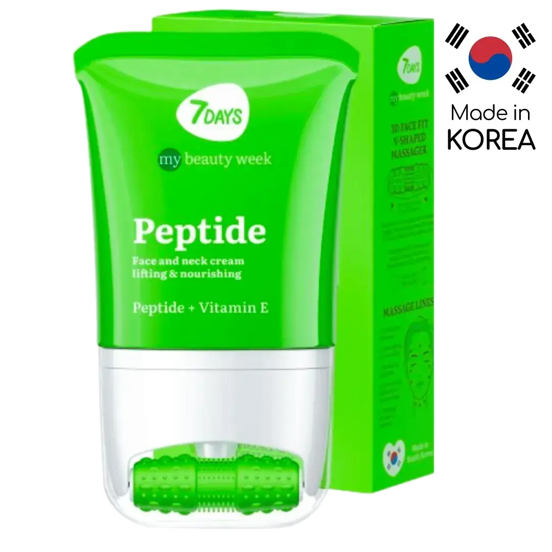 Κορεάτικη Αντιγηραντική Kρέμα για πρόσωπο και λαιμό με Σύμπλεγμα Πεπτιδίων για “Botox effect”, Υαλουρονικού και Shea Butter για βαθιά ενυδάτωση και αναζωογόνηση της επιδερμίδας! Η κρέμα της 7DAYS με πεπτίδιο Acetyl Hexapeptide-8 (γνωστό και ως Argireline) προσφέρει επαγγελματική φροντίδα στο σπίτι. Η πλούσια σύνθεσή της συνδυάζει ισχυρά πεπτίδια και ενυδατικά συστατικά, που βοηθούν στη μείωση των ρυτίδων και των γραμμών έκφρασης, ενώ παράλληλα αναζωογονούν το δέρμα του λαιμού και του ντεκολτέ.
