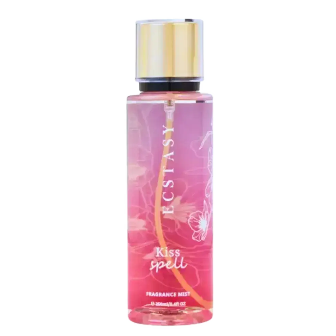 Το Body Mist Kiss Spell της ECSTASY με σαγηνευτικό άρωμα απο καλοκαιρινό ροδάκινο, κεράσι και λευκό γιασεμί χαρίζει φρεσκάδα, ενυδάτωση και αίσθηση ανανέωσης στην επιδερμίδα καθημερινά.