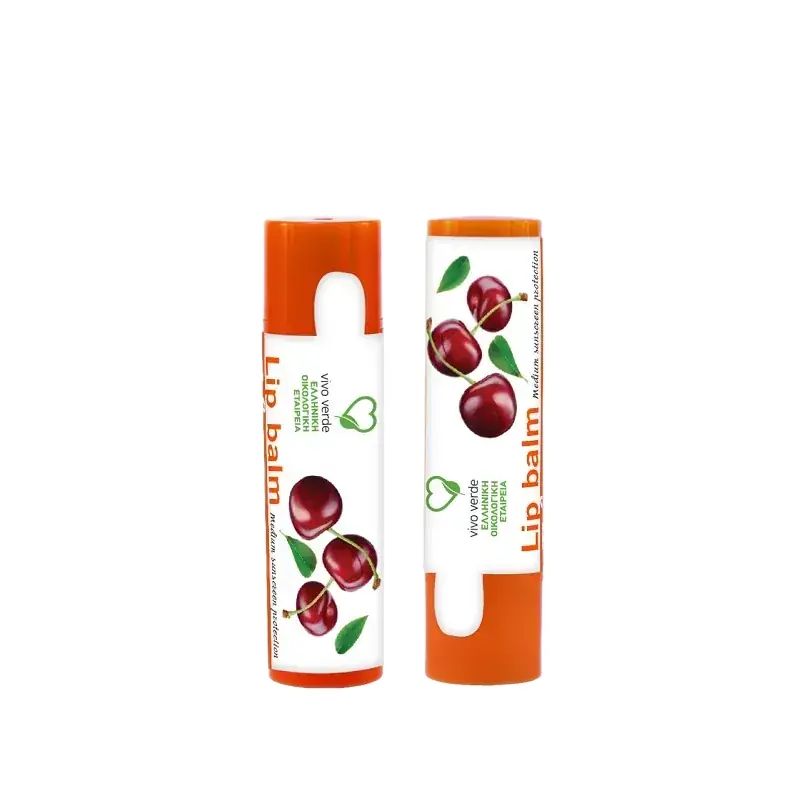 Το Lip Balm Cherry της Vivo Verde με καλοκαιρινό άρωμα κεράσι, περιέχει φυσικά έλαια από argan, jojoba & καλέντουλα και μαζί με το ενυδατικό shea butter μαλακώνει τα χείλη και επαναφέρει την ελαστικότητα του δέρματος.